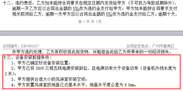這個我們在風(fēng)淋室合同協(xié)議中會注明安裝注意事項中-如下圖: