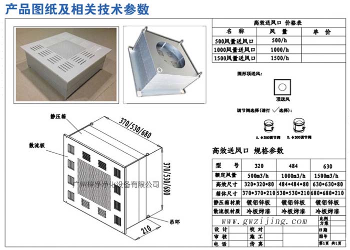 1、一套高效送風(fēng)口含法蘭、靜壓箱體、散流板、高效過濾器四件套,散流板采用冷軋鋼板烤漆制作,靜壓箱體采用鍍鋁鋅板制作,法蘭及調(diào)節(jié)閥采用鍍鋅板制作;