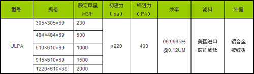 超高效過(guò)濾器應(yīng)用領(lǐng)域適用于超LSI制造工廠、半導(dǎo)體制造工廠、原子力研究中心、無(wú)塵室、層流設(shè)備、芯片廠及10級(jí)1潔凈廠房等潔凈度要求較高的工作環(huán)境、超凈工作臺(tái)等其他要求超高潔凈度的場(chǎng)合。ULPA超高效過(guò)濾器產(chǎn)品圖超高效過(guò)濾器特點(diǎn):
