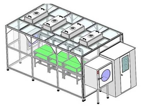 潔凈棚又叫無(wú)塵工作站一般以工業(yè)鋁材(不銹鋼方通、噴塑方通)做框架,采用風(fēng)機(jī)濾網(wǎng)機(jī)組FFU送風(fēng),四周采用防靜電垂簾,頂部鋪蓋密縫盲板,形成一個(gè)密縫區(qū),內(nèi)部?jī)艋?jí)別可達(dá)100—10萬(wàn)級(jí);特別適用于車間內(nèi)局部對(duì)潔凈度要求高的區(qū)域,如流水線作業(yè)區(qū)的高精確度產(chǎn)品組裝區(qū)。