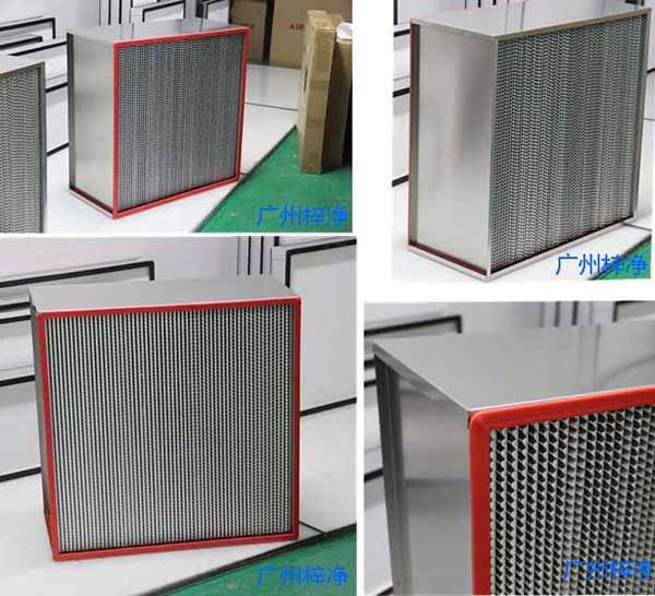 有隔板高效過濾器采用玻纖或超細(xì)玻璃纖維濾紙、鋁箔隔板、不銹鋼外框、特制耐高溫密封膠裝配而成。