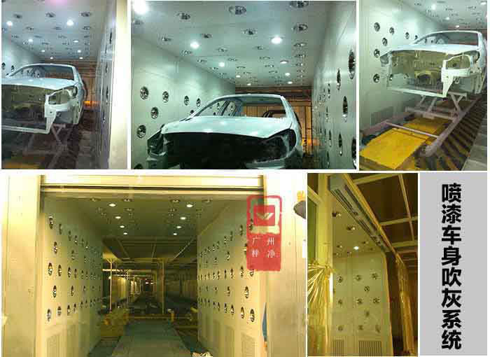 由凈化配套低噪音離心風機,將風淋室內(nèi)的空氣經(jīng)預(yù)過濾器吸入后壓入靜壓室,在靜壓室內(nèi)再經(jīng)高效過濾器壓出,經(jīng)過二級過濾后,將潔凈的空氣從箱體左右側(cè)及頂側(cè)的噴口高速噴出,將汽車表面的塵埃吹落,連同空氣一起再被風機吸入預(yù)過濾器,空氣中的塵埃將會被初、高效過濾器吸收。空氣則經(jīng)高效過濾器后再從噴口吹出,如此循環(huán),以達到風淋除塵的目的。