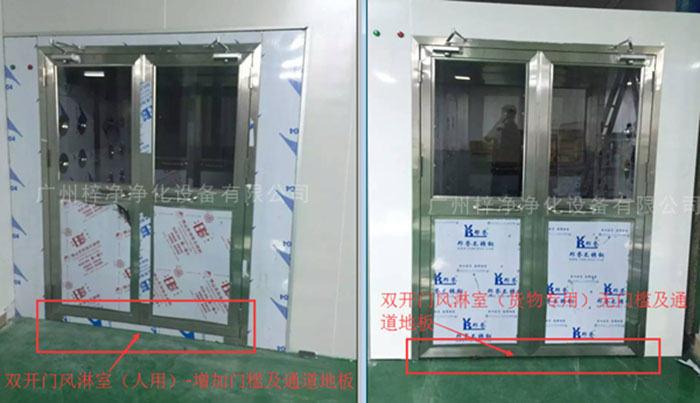 2、人淋風(fēng)淋室設(shè)置門檻及通道地板–保證風(fēng)淋室的密封性;
