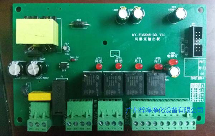 風(fēng)淋室輸出板又稱為副板,和主板一起配套使用。風(fēng)淋室控制器又叫風(fēng)淋室主板,風(fēng)淋室電路板,屬于風(fēng)淋室配件。一套風(fēng)淋室控制器由主板、輸出板、數(shù)據(jù)線組成。風(fēng)淋室分別多人風(fēng)淋室自動(dòng)門風(fēng)淋室、快速卷簾門風(fēng)淋室、防爆風(fēng)淋室內(nèi)置自動(dòng)門風(fēng)淋室、轉(zhuǎn)角風(fēng)淋室等等。數(shù)碼管顯示風(fēng)淋室空制器背面風(fēng)淋室控制面板: