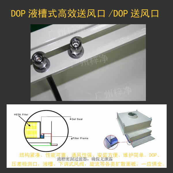 DOP液槽式高效送風(fēng)口優(yōu)點: