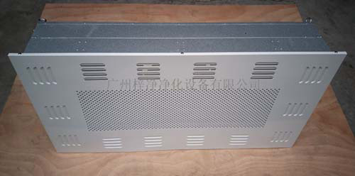 A、高效送風(fēng)口靜壓箱體,材質(zhì)有冷軋鋼板(A3板)與不銹鋼板。箱體是用作吊在天花上與四周庫(kù)板相結(jié)合密封,也是高效送風(fēng)口四件套主體。